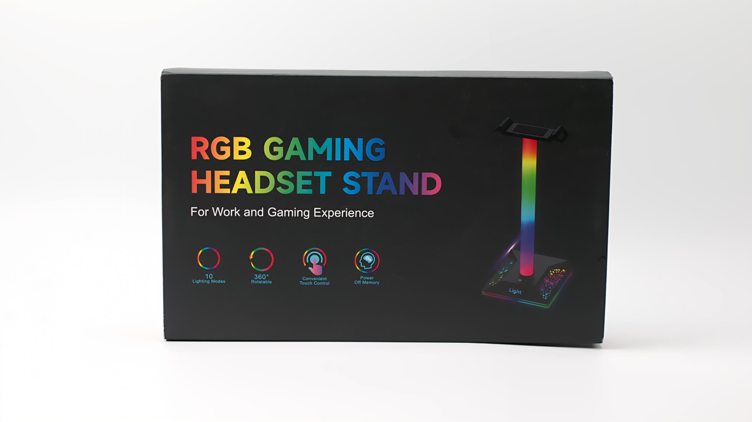 The stand features ten customizable lighting modes (seven static and three dynamic). You can choose from White, Yellow, Green, Blue, Light Blue, Purple, and Red, or three RGB modes with just a simple light tap. Quickly change the light with just one tap, but it does not have an on/off switch. The lighting features a frosted cover that helps diffuse the lighting for a softer glow.